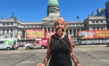 Nancy Pazos se encadenó frente al Congreso y Adorni djo que “el nivel del delirio es astronómico"