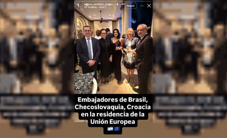 En una de las historias que la funcionaria publicó del evento que tuvo lugar el lunes se la puede ver rodeada por un grupo de diplomáticos a quienes describe como “embajadores de Brasil, Croacia y Checoslovaquia”.