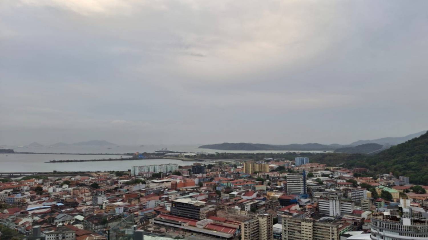 Unos 150 metros y 37 pisos arriba, se puede observar el Canal, sectores del casco más antiguo y lo moderno, el cerro Ancón con la bandera flameando y la bahía, hacia el Pacífico.