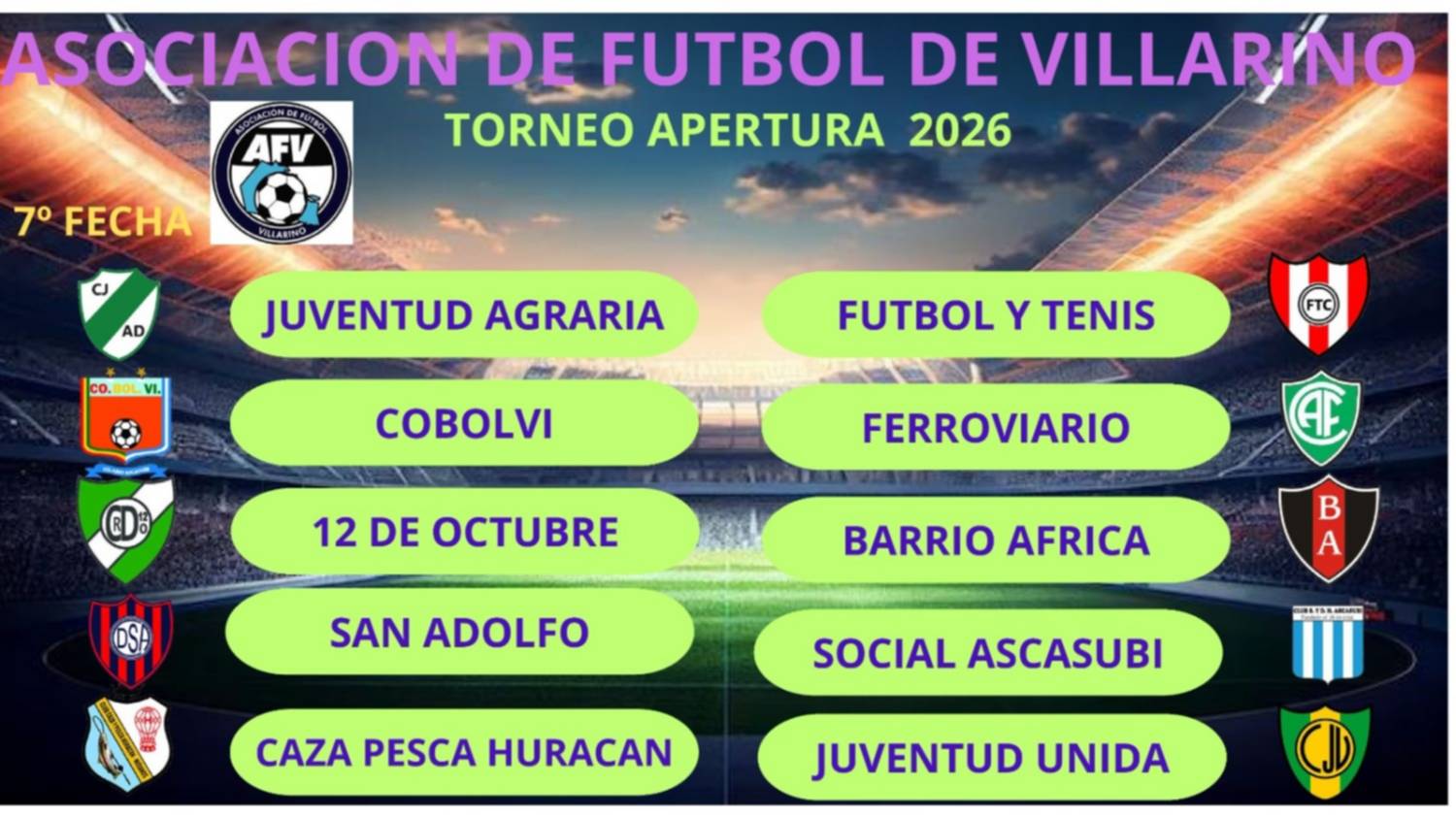 La octava se jugará el sábado venidero con Argentino-El Nacional y Universitario-Santa Rosa RC, que también tendrá validez por el Norpatagónico. Fecha libre, Sociedad Sportiva.