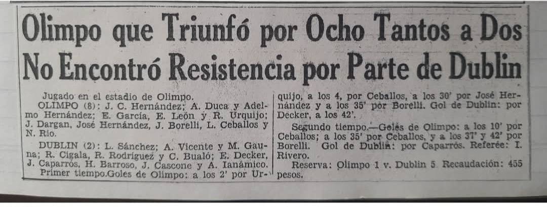 <![CDATA[El último Olimpo-Dublin y el recuerdo de un “León” que está entre los mejores “5” de la Liga del Sur]]>https://www.lanueva.com/nota/2026-4-23-16-51-0-el-ultimo-olimpo-dublin-y-el-recuerdo-de-un-leon-que-esta-entre-los-mejores-5-de-la-liga-del-surhttps://www.lanueva.com/nota/2026-4-23-16-51-0-el-ultimo-olimpo-dublin-y-el-recuerdo-de-un-leon-que-esta-entre-los-mejores-5-de-la-liga-del-surEl sábado, en cancha de Liniers y por la fecha 7 del torneo Apertura de la B, Olimpo y Dublin se volverán a enfrentar oficialmente en la Liga del Sur después de casi 78 años. ¿Cómo? Sí, la última vez que estuvieron cara a cara en una competencia local fue el 31 de octubre de 1948, victoria del aurinegro 8-2 en el “nuevo” estadio Roberto Carminatti.