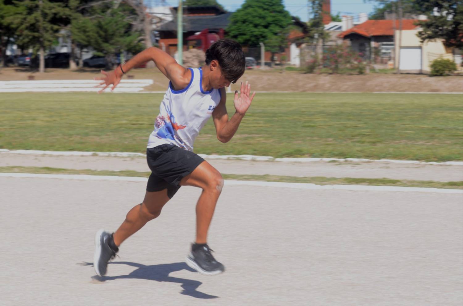 Segundos después, Manu nos regaló 15 minutos de su tiempo. Nos contó, off the record, lo feliz que estaba de semejante oportunidad (bien ganada, claro). Del esfuerzo, de su primera vez en un avión, de lo que va a poder disfrutar hasta el sábado, como integrante del seleccionado de atletismo, pero también como un hincha más.