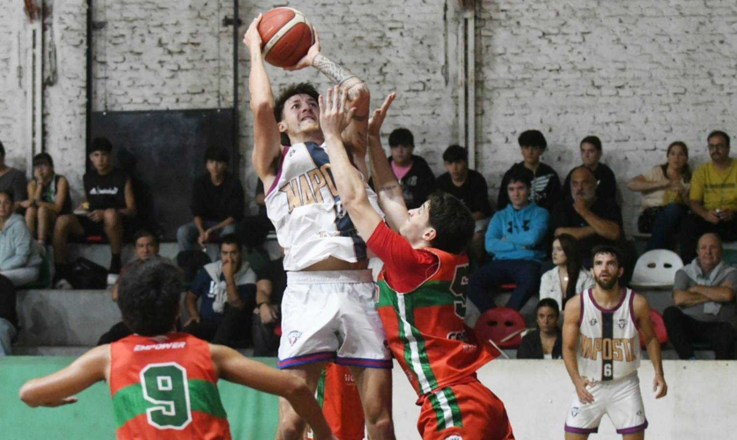 No obstante, la aparición de Depaoli, que no venía teniendo una gran noche, con un doble y bonus, más otro acierto tras rebote ofensivo, volvieron a alejar a Napostá (59 a 51, con 2m25s por jugar).