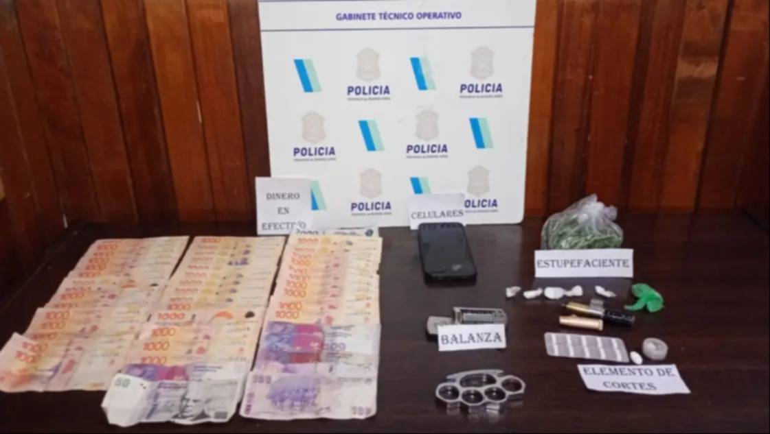 El motociclista -Cortés- llevaba una riñonera en cuyo interior observaron "flores de color verdosa símil marihuana en gran porte", encontrándose "en el fondo de la misma 5 bochas de nylon conteniendo sustancia símil cocaína, como así también otra bocha de flor de color verdosa símil marihuana, una pastilla suelta y un frasco de pequeñas dimensiones que en su interior contenía una sustancia blanca y 42.650 pesos argentinos".