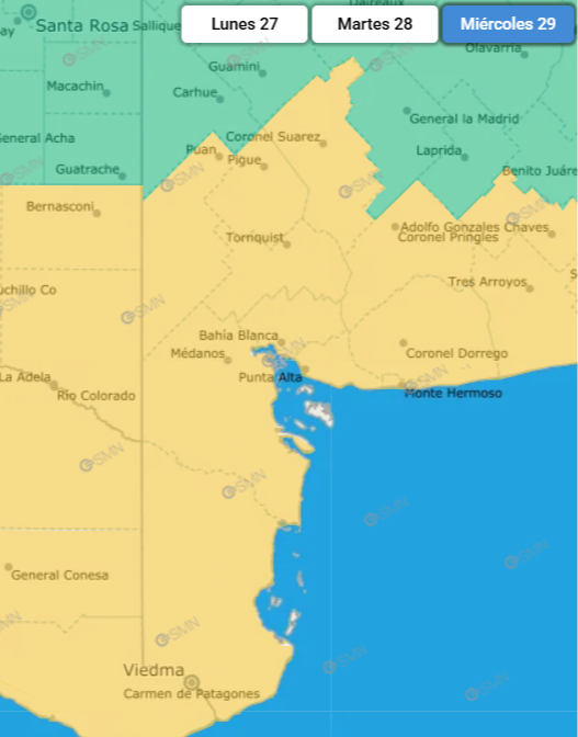 Volviendo a los alertas del SMN, desde el ente se afirmó que el resto de la región permanece en alerta amarilla también hasta las 24 de hoy.