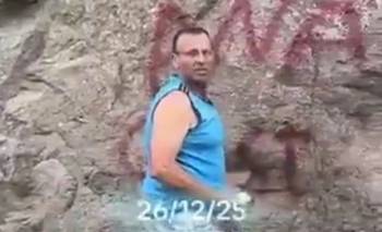 Un camionero fue grabado mientras pintaba grafittis en el Parque Nahuel Huapi: fue sancionado